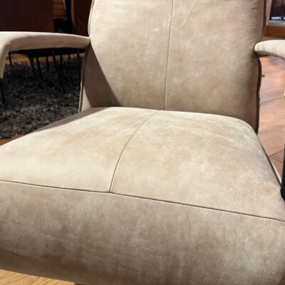 Luxussessel Deliza mit elektrisch verstellbarer Fußstütze und Rückenlehne, die mit Touch-Tasten bedient werden können. Aus Leder: Beton – Sand. Inklusive eingebautem Akku, Lendenkissen, äußerer Naht (3) und Sternfuß schwarz. Der Preis gilt für das abgebildete Modell. Sehen Sie sich hier alle Optionen an .