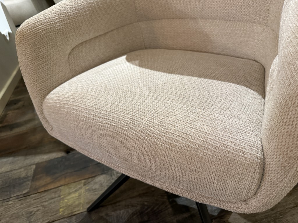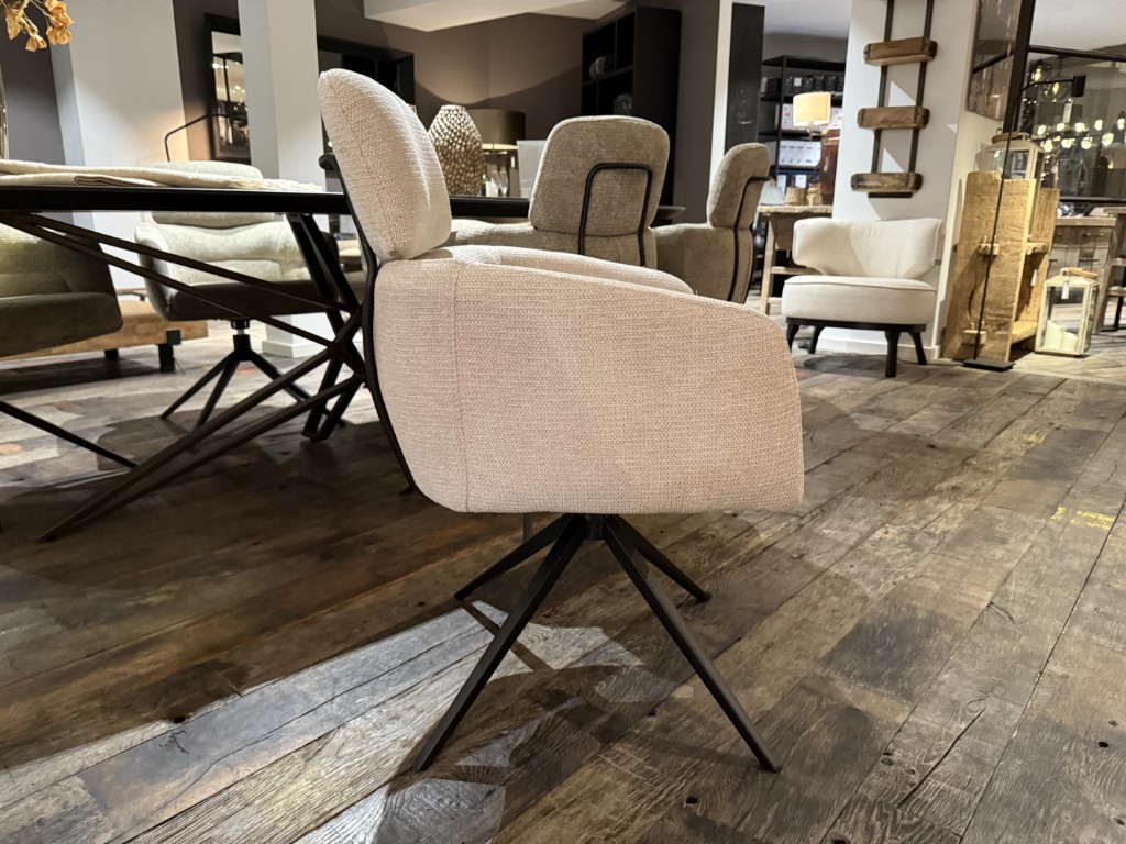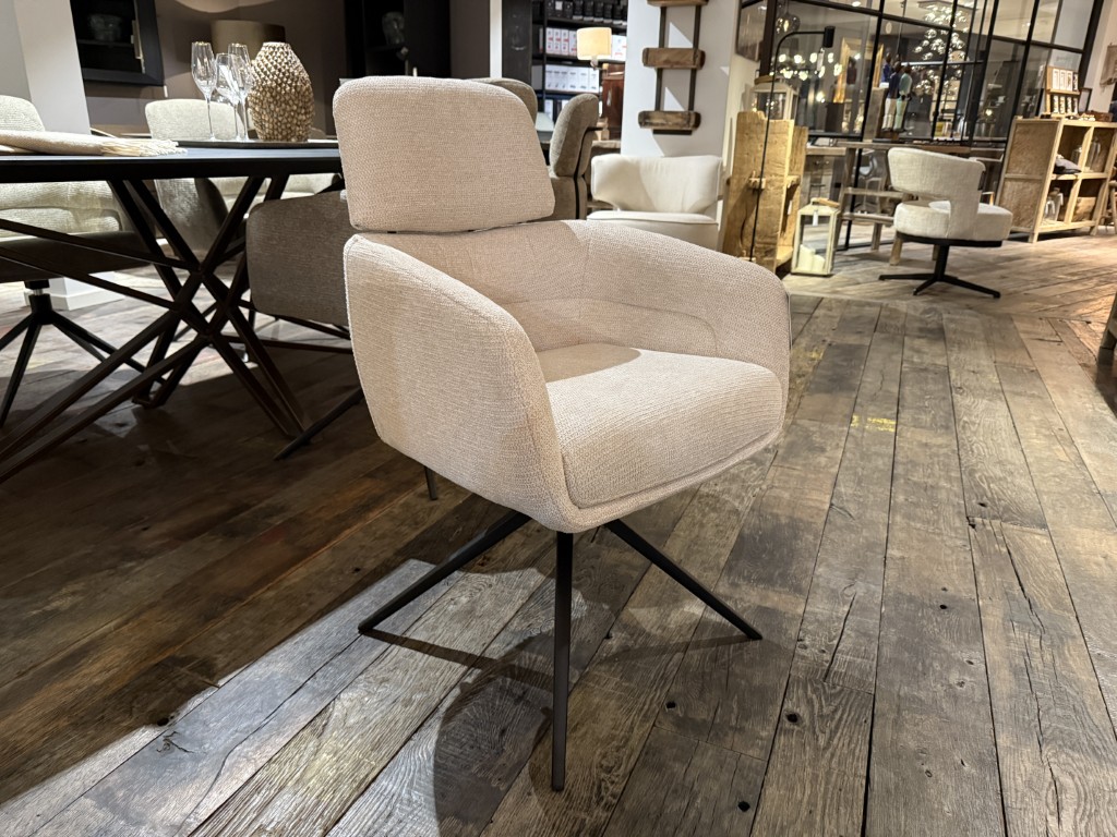 Esszimmerstuhl Grace, mit Armlehne und schwenkbarem Bein, ausgeführt in Farbe: Ivory. Auch in Farbe erhältlich: Sand.