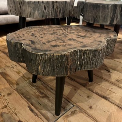 Massiver Beistelltisch ‘Indigo’ auf 3 Metallbeinen aus Hartholz.