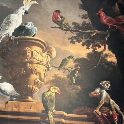 Gemälde “Die Menagerie” des Malers Melchior d’Hondecoeter, gedruckt auf Leinwand.