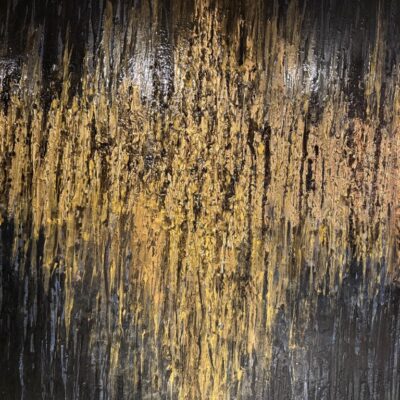 Handgefertigtes Gemälde ‘Golden Stripes’, hergestellt aus einer Leinwand mit Epoxidharz und Blattgold.