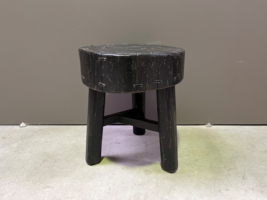 Alter Kiefernstamm Hocker Schwarz
