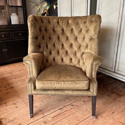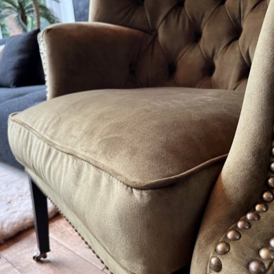 Armchair ‘Churchill’, made of fabric Royal – Forest 162. Can also be ordered with other upholstery.