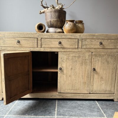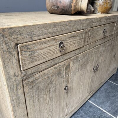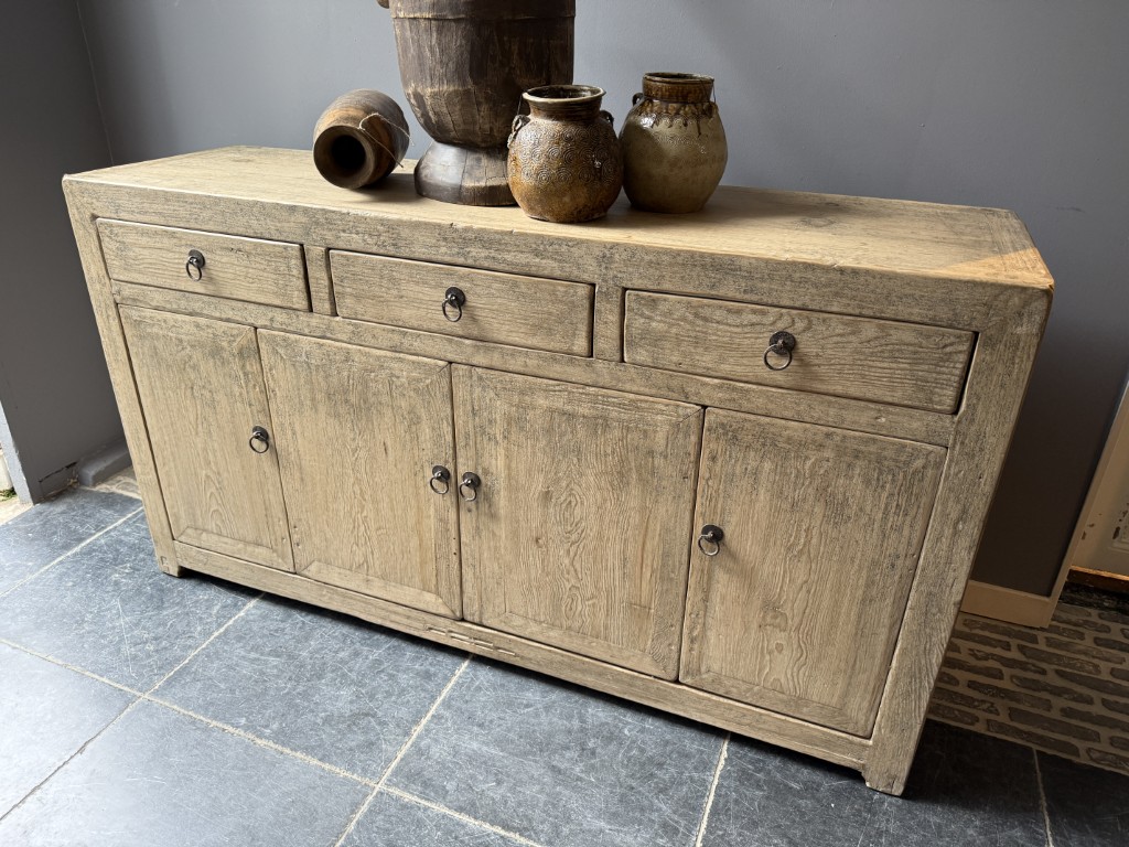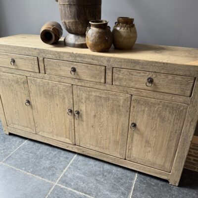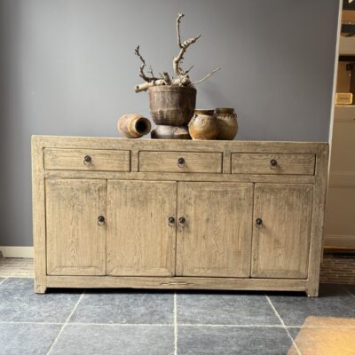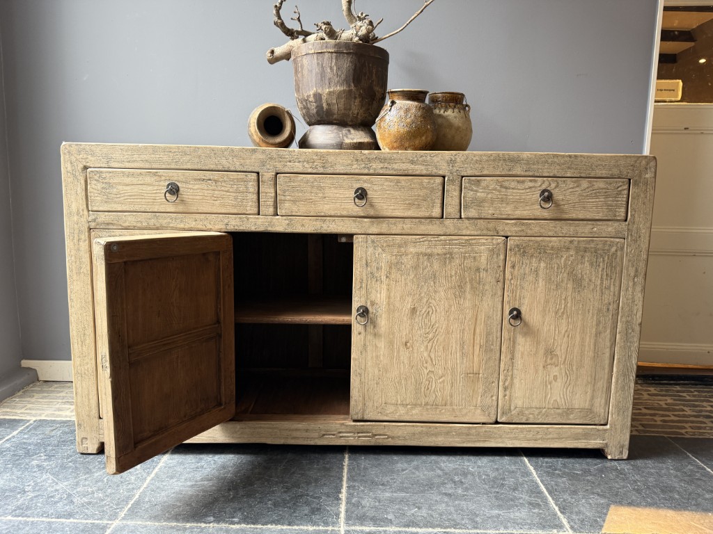 Antique Chinese sideboard with 4 doors and 3 drawers, made of old pine wood.