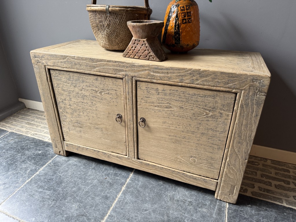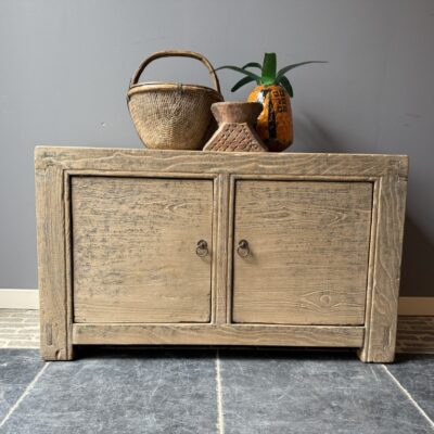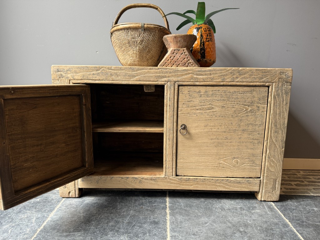 Antique Chinese TV sideboard with 2 doors, made of old pine wood.