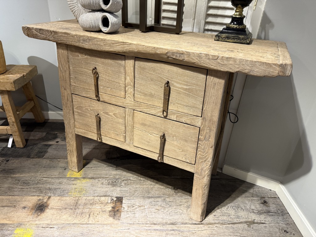 Antique Chinese console table with four drawers, made of elm wood.