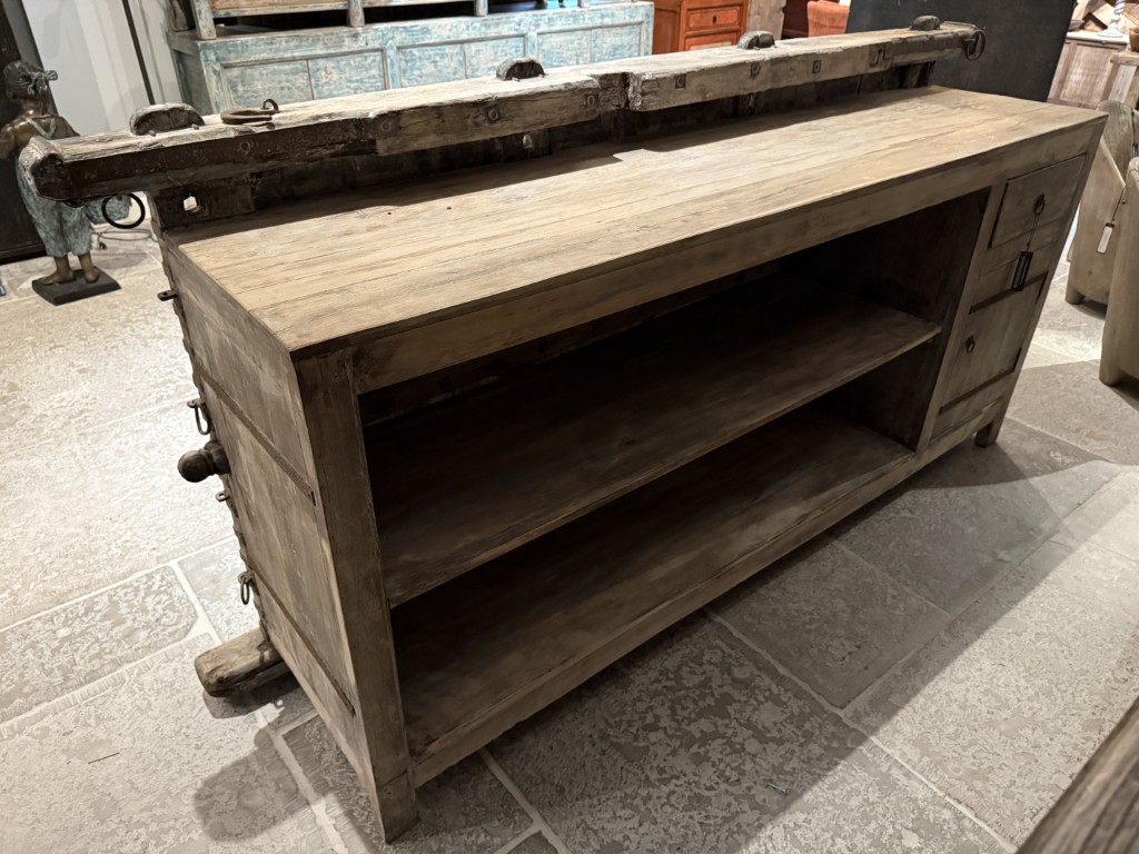 Antique counter, made of hardwood and metal. Also nice to use as a bar.
