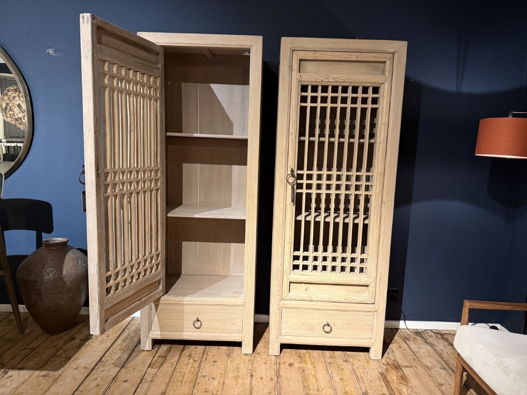 Cabinet ‘Caracas’ with an open door and a drawer, made of old pine wood. Available with door left or right.