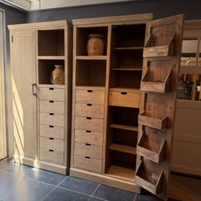 Cabinet ‘Denver S’, made of old pine wood. Available with door left or right, but even better as a set of two!