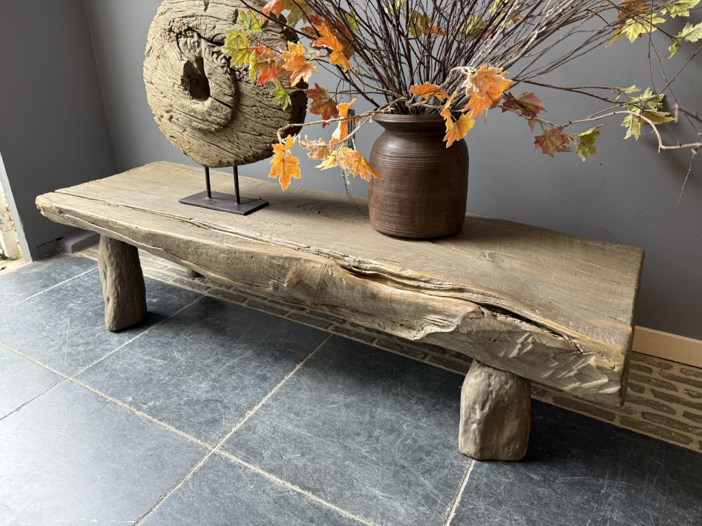 Coffee table, made of coarse elm wood.