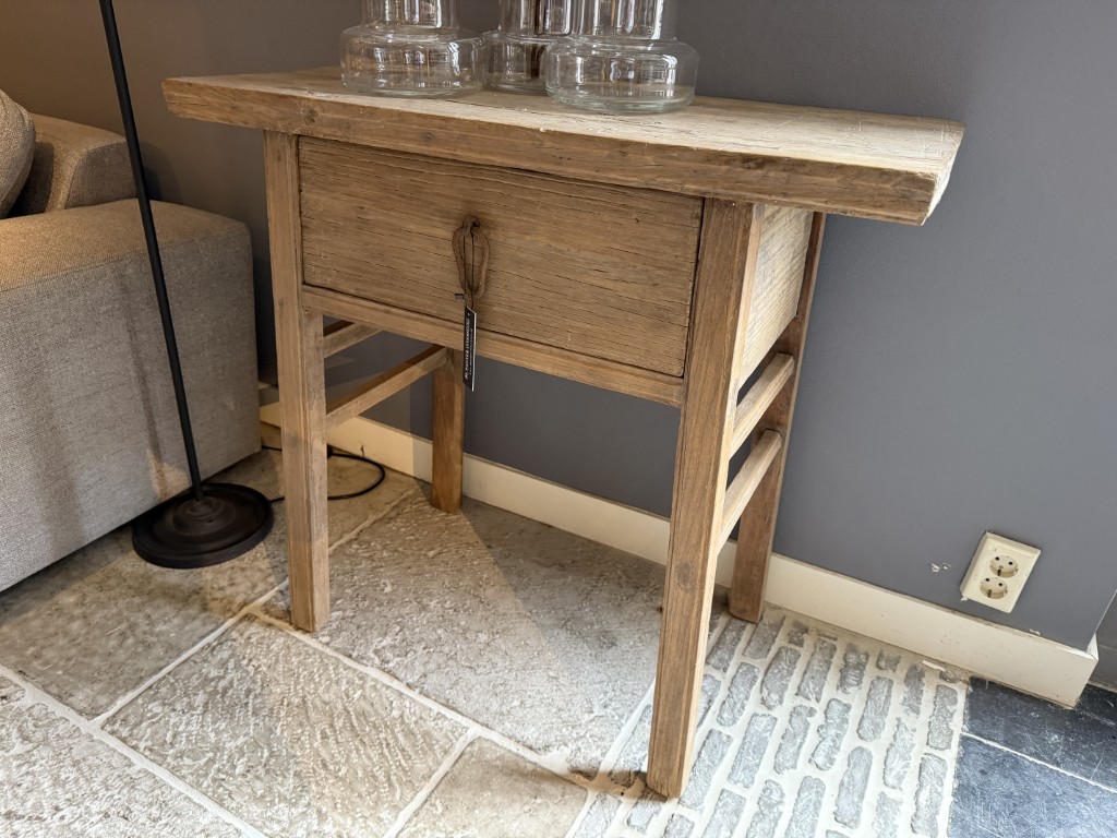 Console table with a drawer, made of elm wood.
