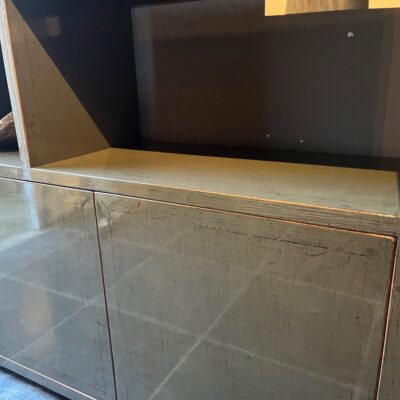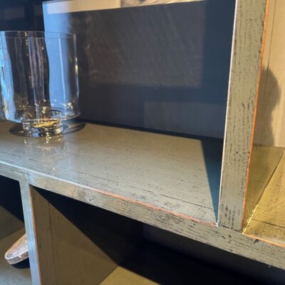 The cabinet is also beautifully finished with green lacquer on both sides, making it perfect for use as a room divider.