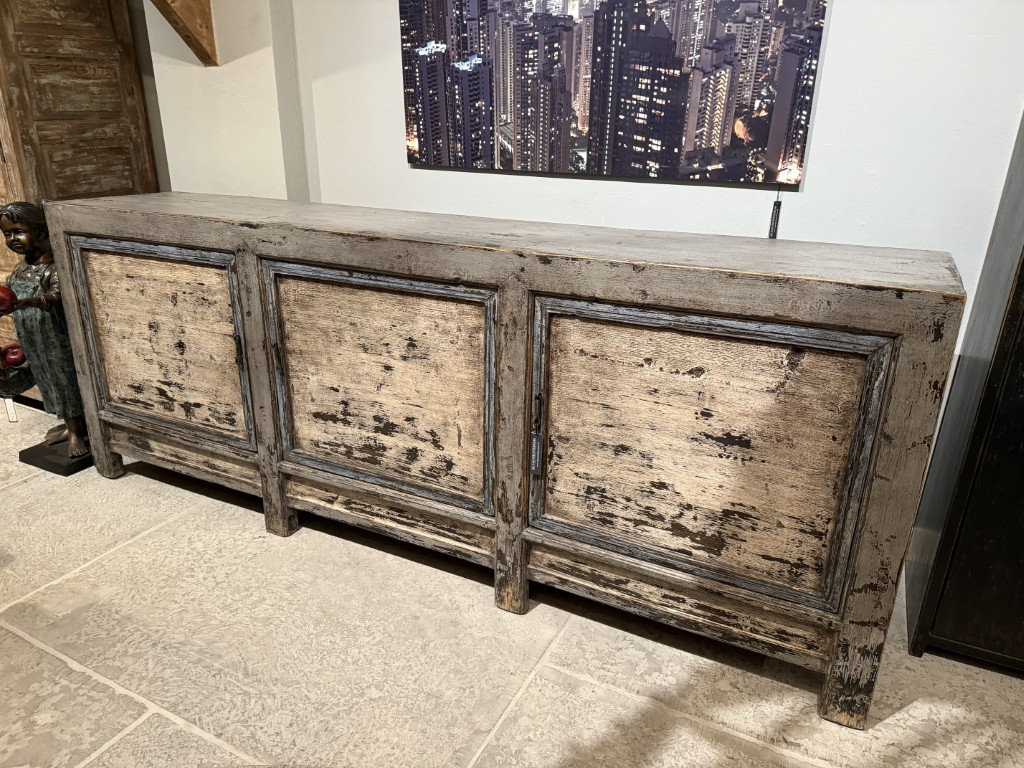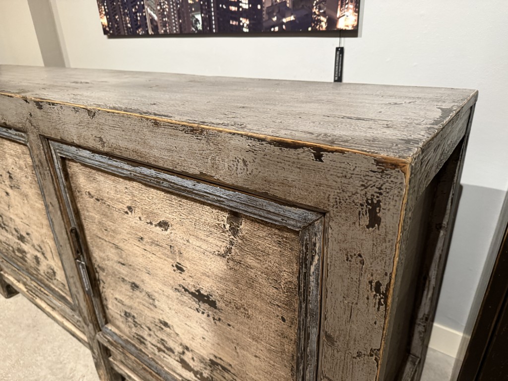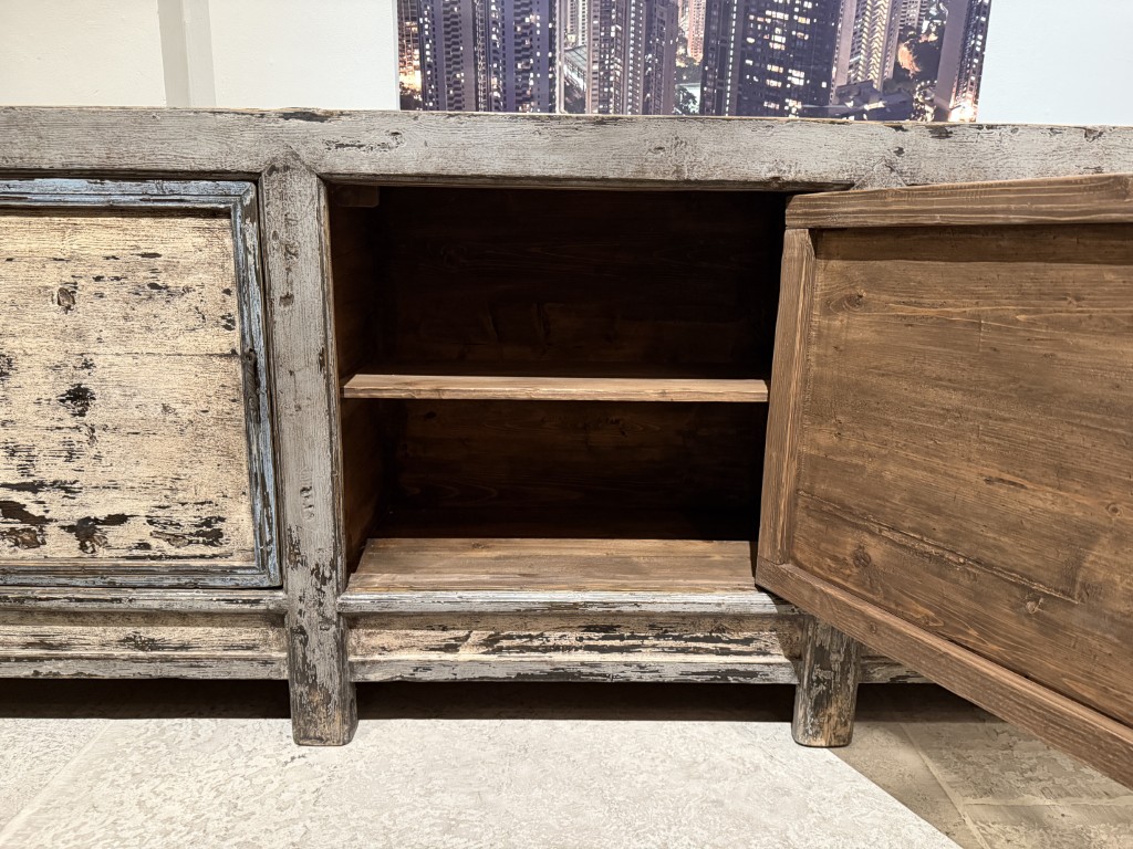 Sideboard vintage mat with 3 doors, made of old pine wood.