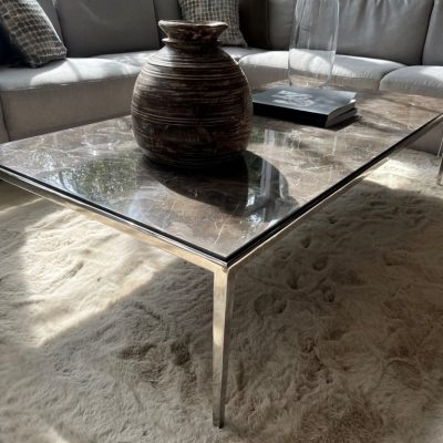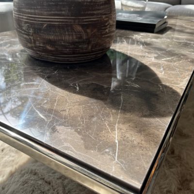 Coffee table ‘Henley’ from the Eichholtz brand. The coffee table is made of a marble top and a shiny metal frame.