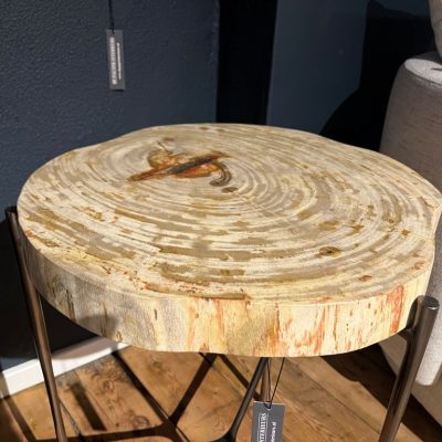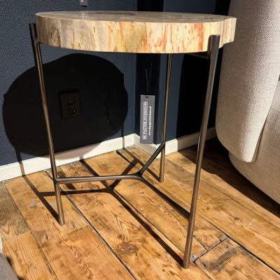 Side table ‘Boylan’ from the Eichholtz brand, made of petrified wooden top and a metal frame.