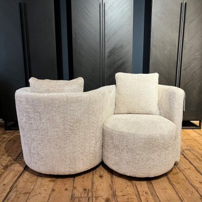 Armchair Duo, a tête-à-tête armchair. Made in fabric Ti Amo Pearl (A).