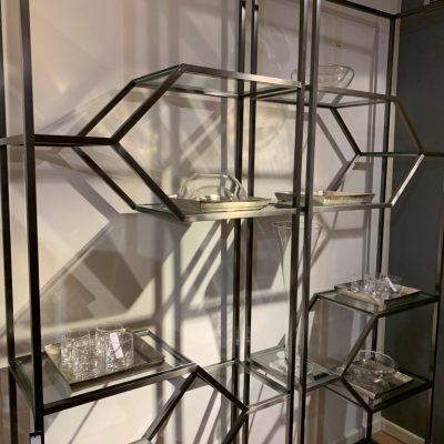 Open rack made of metal and glass. Please note: the photo shows two racks next to each other.