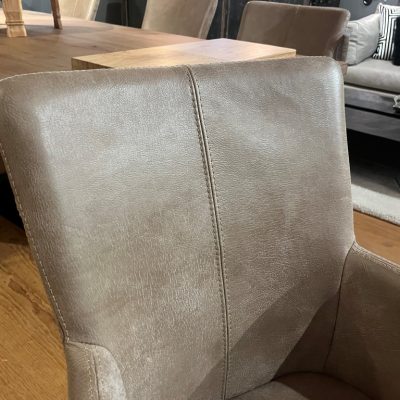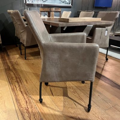 Dining room chair Suske with armrest and wheels, made in leather: Africa – Tin.
