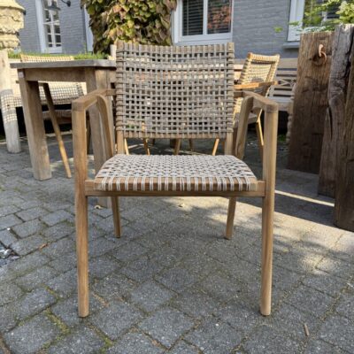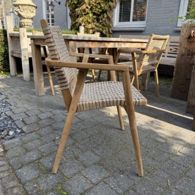 Teak garden chair ‘Gina’. The chairs are stackable and therefore easy to store.
