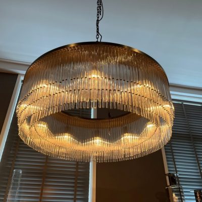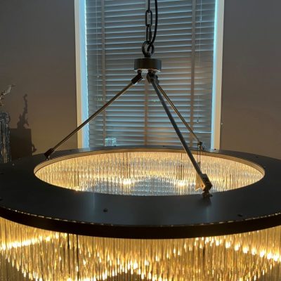 Chandelier ‘Hector L’ with a bronze finish. The icicles of the lamp are made of glass.