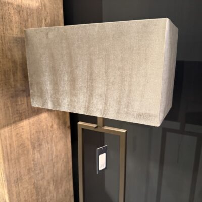 Floor lamp ‘Daan’, made of a metal base and a shade of velvet fabric.