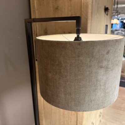 Floor lamp ‘Emma’, made of a metal base and a velvet fabric shade.