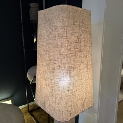 Floor lamp ‘Lizzano’ with a shade of linen fabric. The base of the lamp is also covered with linen fabric.
