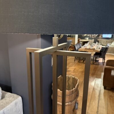 Floor lamp ‘Lukas Brown’, made of a metal base and a fabric shade.