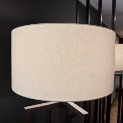 Floor lamp ‘Rick’, made of a brown-coloured, metal base and a fabric shade.