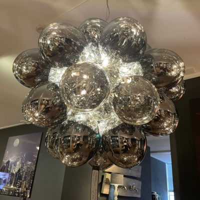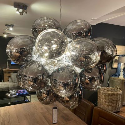 Hanging lamp, made of several spheres of ‘smoke’ glass.