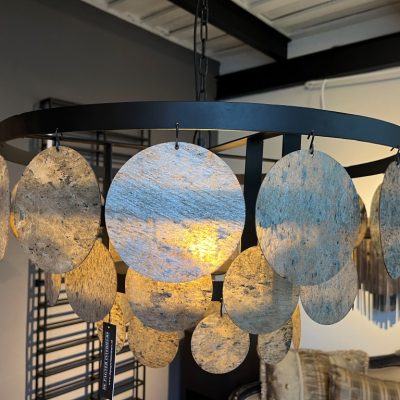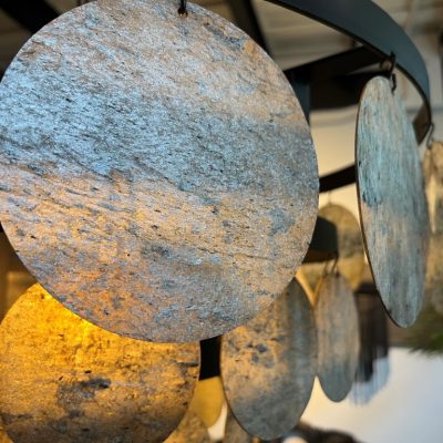 Hanging lamp ‘Discs’, made of a metal frame and plastic hangers.