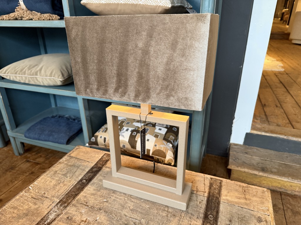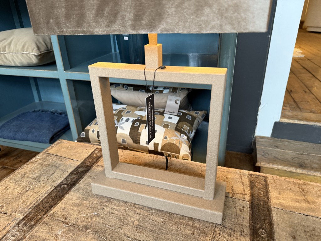 Lamp ‘Corne’, made of a metal base and a velvet fabric shade.