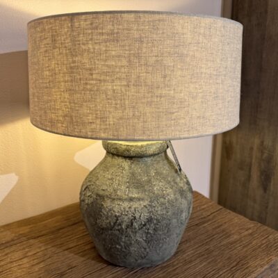 Lamp ‘Figo’, made of an earthenware base and a fabric shade.