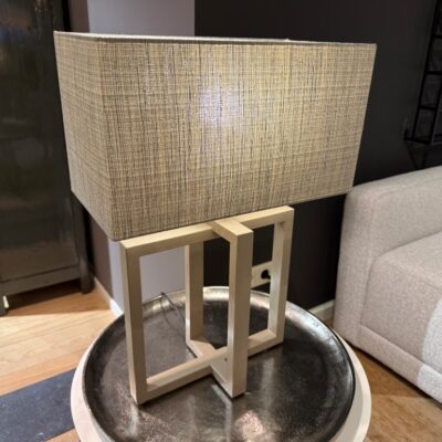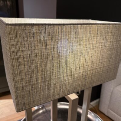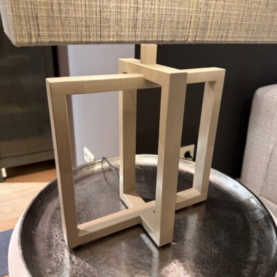 Table lamp ‘Bas’ with a grey metal frame and a fabric shade.