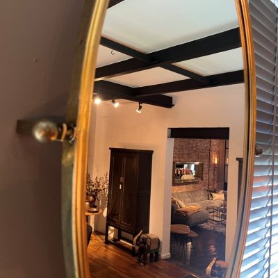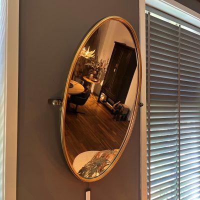 Adjustable mirror ‘Yunis’ with a frame of gold-coloured metal.