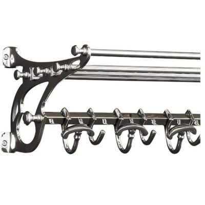 The nickel-finished Hudson S Coatrack is reminiscent of the luggage racks in old steam trains. This nostalgic wall coat rack has 13 hooks for hanging overcoats and jackets and a top shelf for gloves, hats and the like.