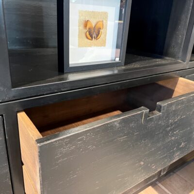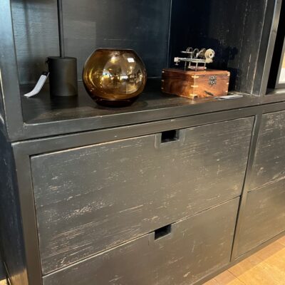 Étagère ouverte ‘Domburg’ avec 8 tiroirs et 12 compartiments ouverts, en métal et vieux bois de pin. Également disponible dans d’autres couleurs et sur mesure.