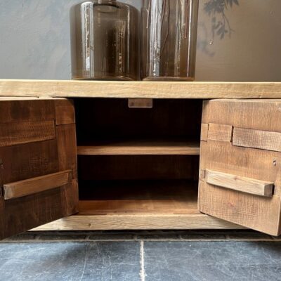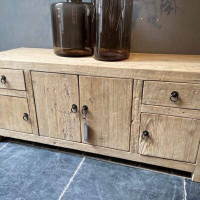 Buffet TV ‘Rico’ avec 4 portes et 2 tiroirs, en vieux bois de pin.