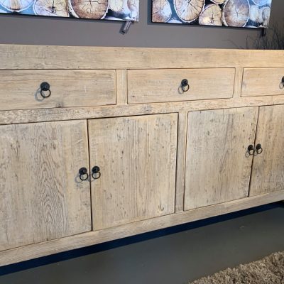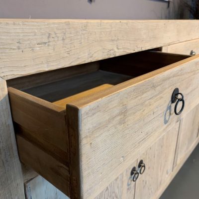 Buffet ‘Charlotte’ avec 3 tiroirs et 4 portes, en vieux bois de pin.