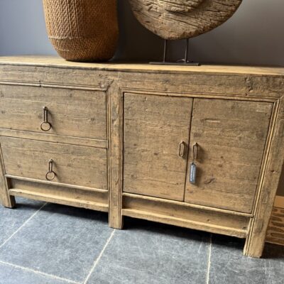 Buffet chinois ancien avec 2 tiroirs et 2 portes, en vieux bois de pin.