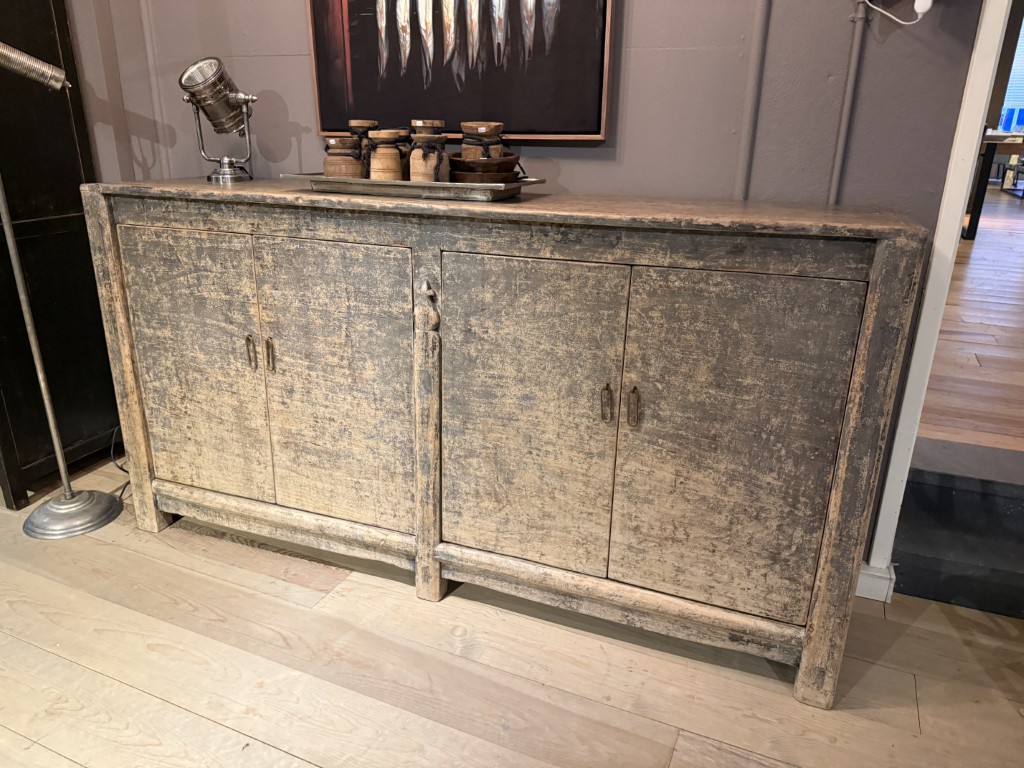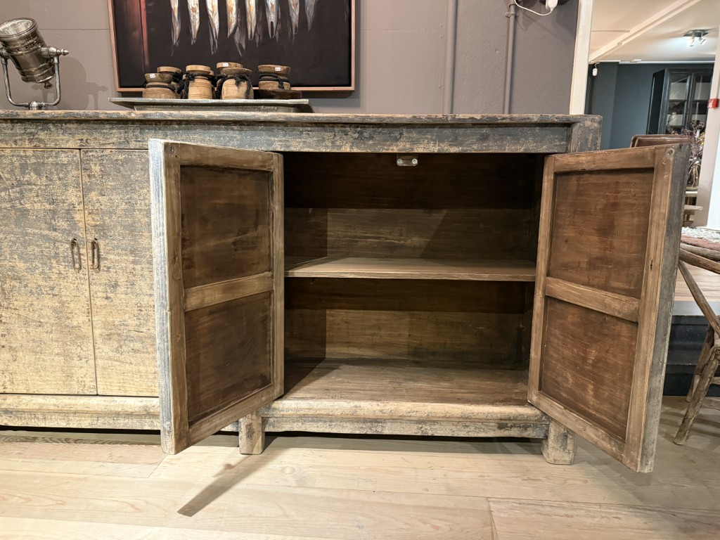 Buffet chinois ancien à quatre portes, en bois d’orme.