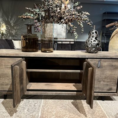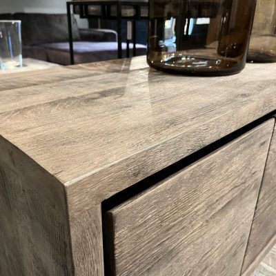 Buffet ‘Buddy’ à 4 portes, en chêne. Les étagères de l’armoire sont amovibles.