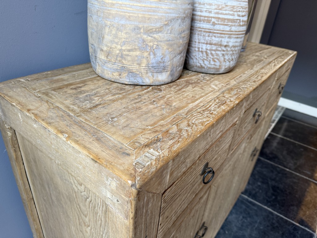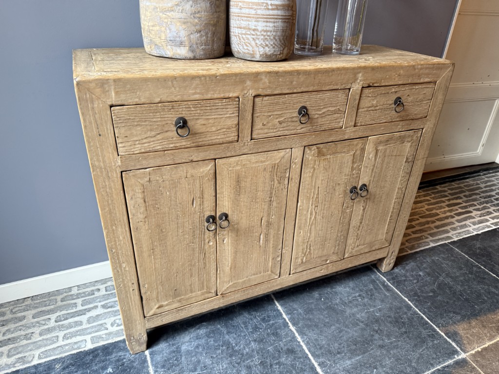 Buffet de campagne avec 4 portes et 3 tiroirs, en vieux bois de pin.
