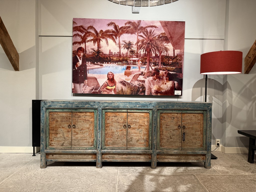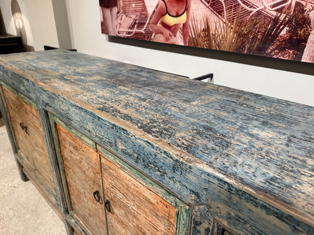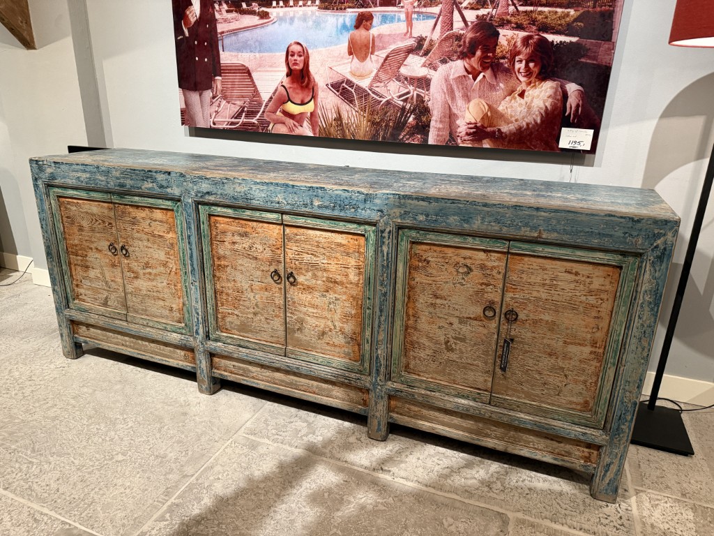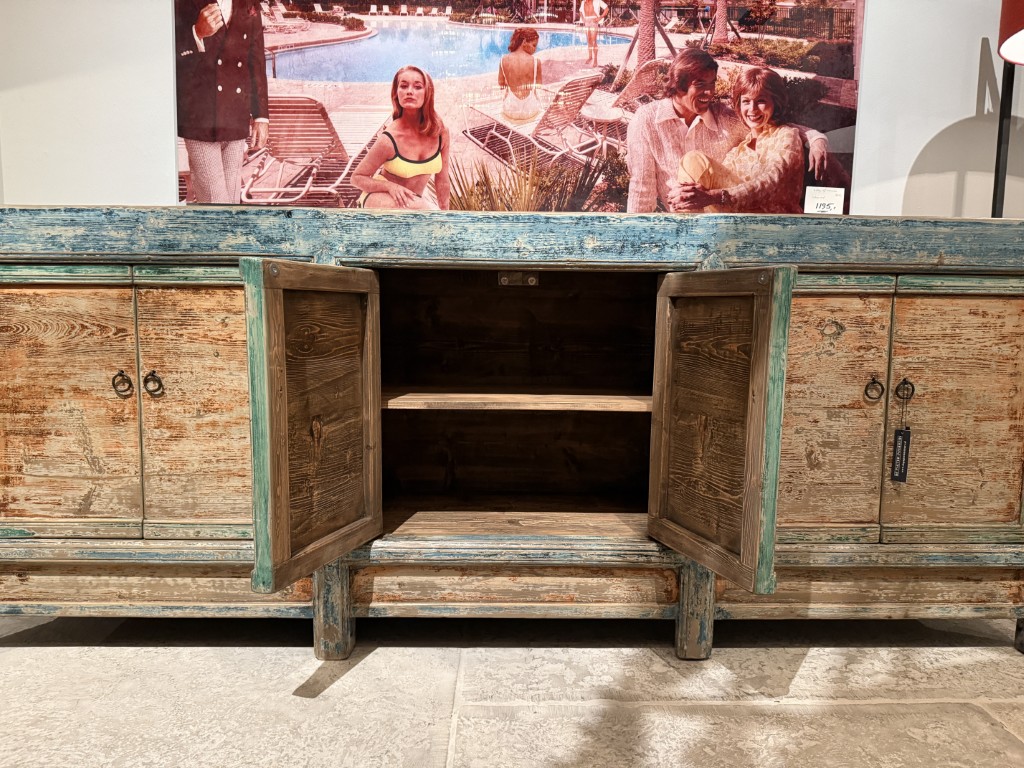 Buffet tapis vintage à 6 portes, en vieux bois de pin.