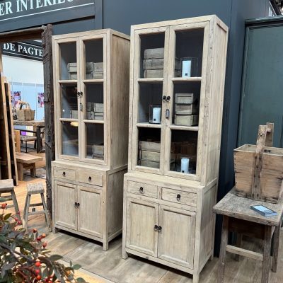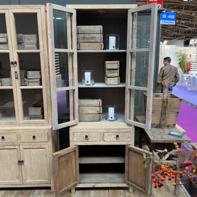 Vitrine ‘Verona’ avec 4 portes et 2 tiroirs, en vieux bois de pin. Existe également en noir.