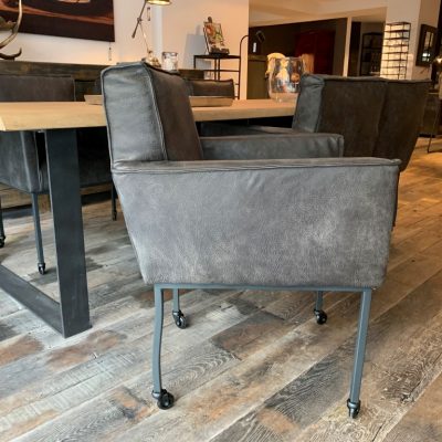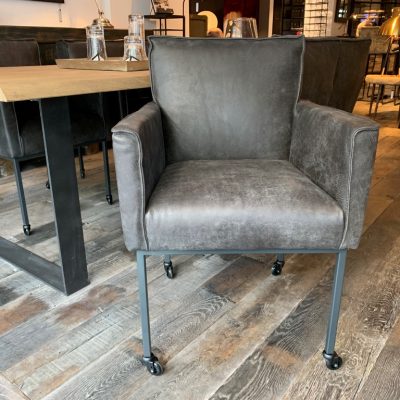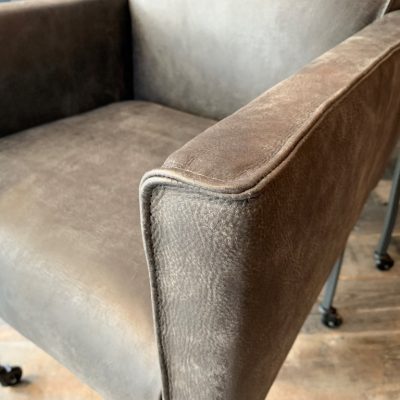 Chaise de salle à manger Leroy, avec accoudoir, roue de patin, en cuir : Afrique – Testa di Moro.