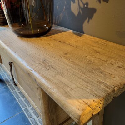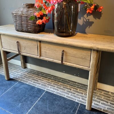 Console ‘Paris’ avec 2 tiroirs, en bois d’orme. Également disponible avec 1 tiroir (100cm de large).