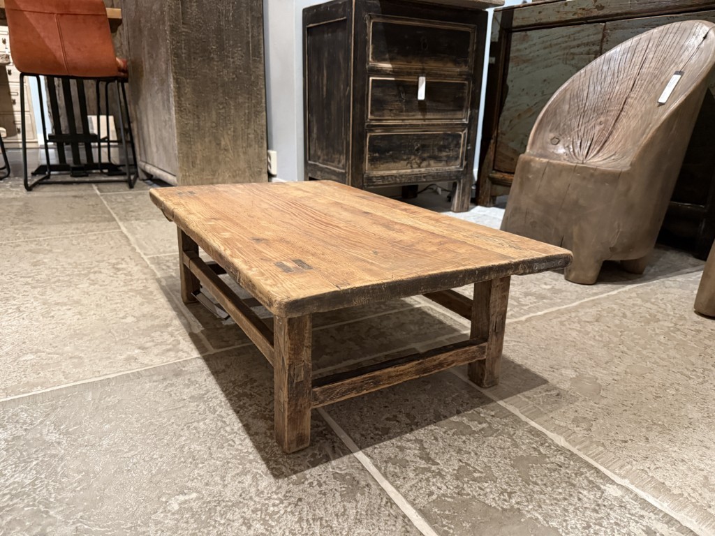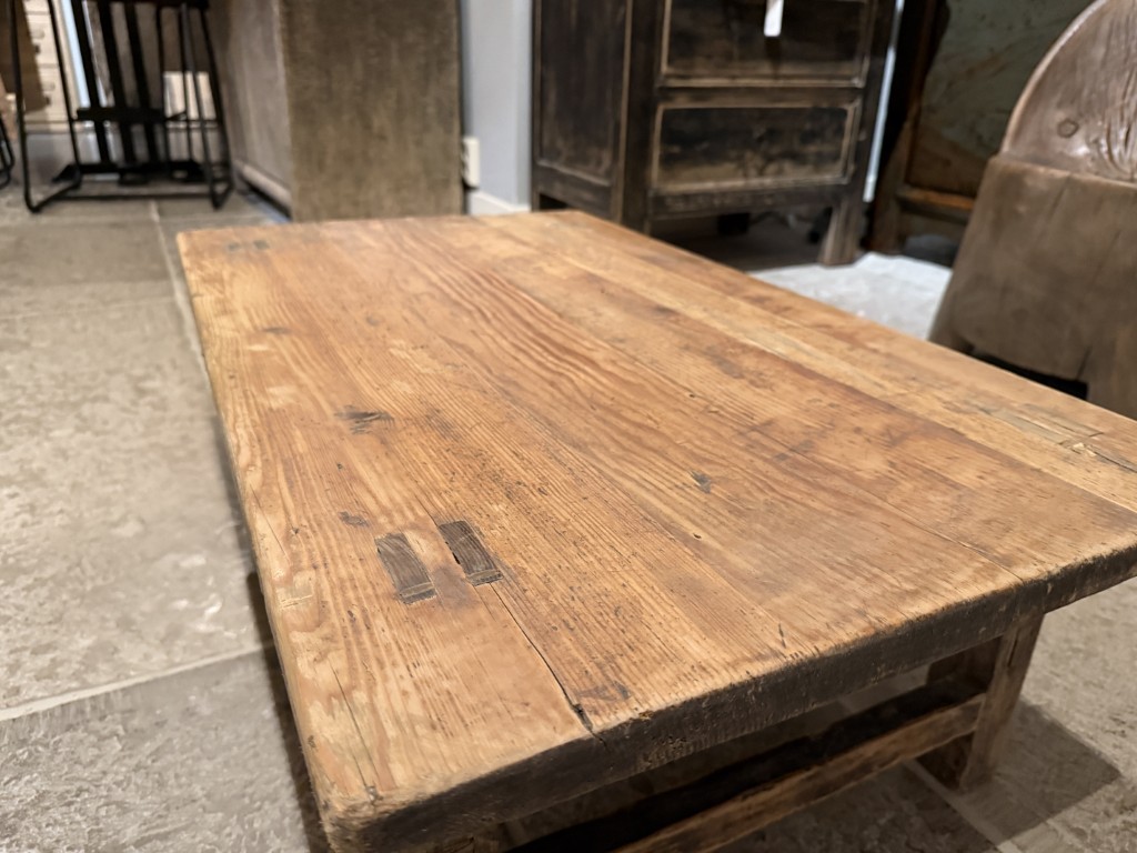 Table basse champĂȘtre, en vieux bois de pin.