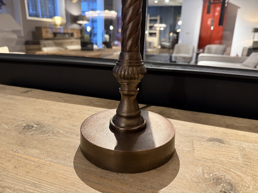 Lampe de table « Palm », faite d’une base métallique et d’un abat-jour en velours.
