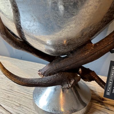 Glacière à champagne, en aluminium et bois de cerf. Également disponible plus petit.